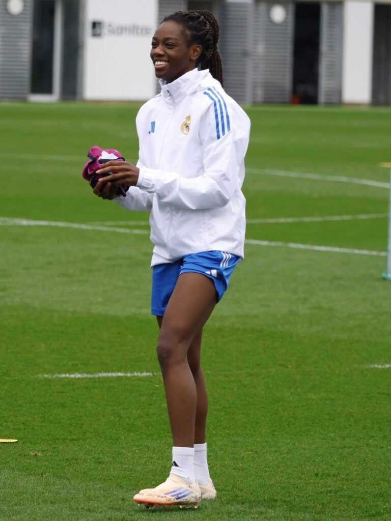 Athenea del Castillo en el entrenamiento previo de Champions ante el TwenteLinda Caicedo en el entrenamiento previo de Champions ante el Football Club TwenteNaomie Feller sonriente en el entrenamiento previo de ChampionsPau Comendador bebiendo agua en el entrenamiento previo de ChampionsMisa Rodríguez en el entrenamiento previo de Champions ante el TwenteMaría Méndez, en carrera, durante el entrenamiento previo de Champions ante el TwenteLas jugadoras Del Real Madrid bebiendo agua en el entrenamiento previo de Champions ante el Twente