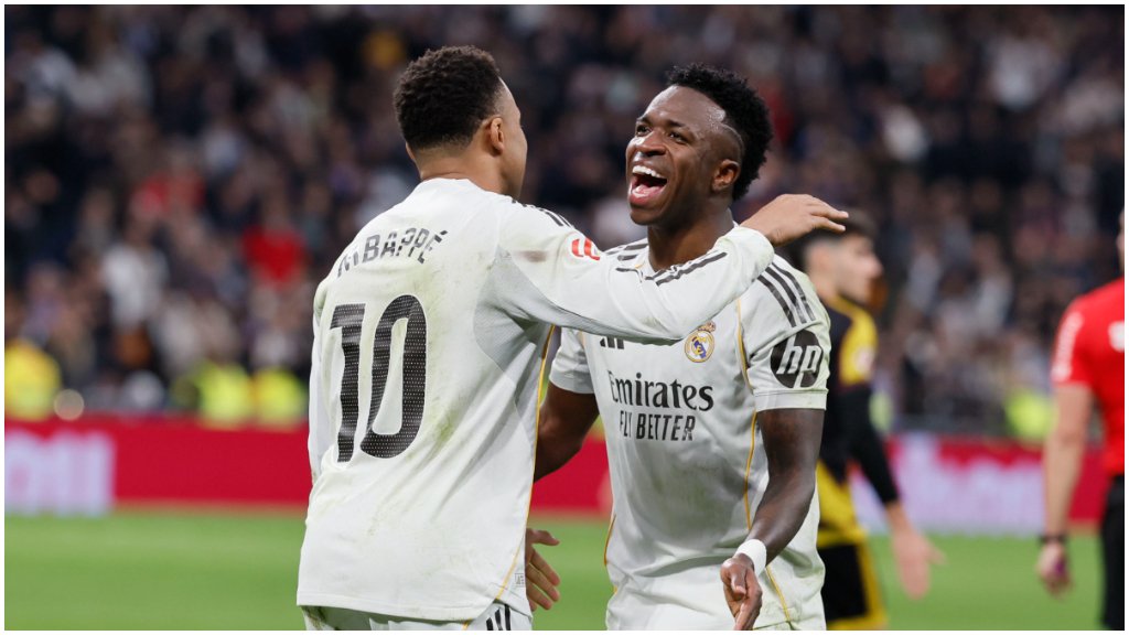 Kylian Mbappé y Vinicius Jr celebrando la victoria ante el Rayo Vallecano. (Foto: EFE)